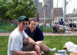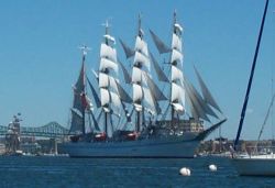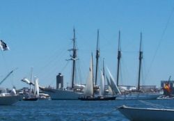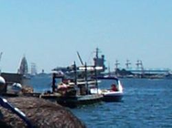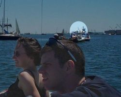 Mark, Steve, Denise and I all took the day off to watch the Parade of Sail as part of Sail Boston 2000. As part of the membership Mark and I have with the BHSC we were able to watch the parade from the deck of a sailboat moored in the harbor. We had an incredible view of the tall ships as they sailed right in front of us.